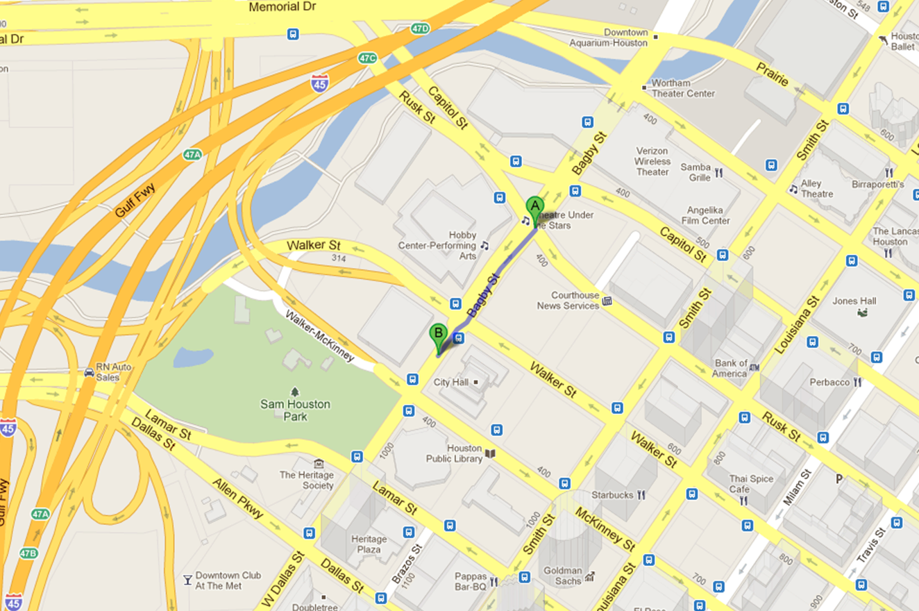 Note from Mike: The small route map on the OccupyHouston site (Top) is different from the larger map they link you to [Bottom] Might want to get that co-ordinated.
